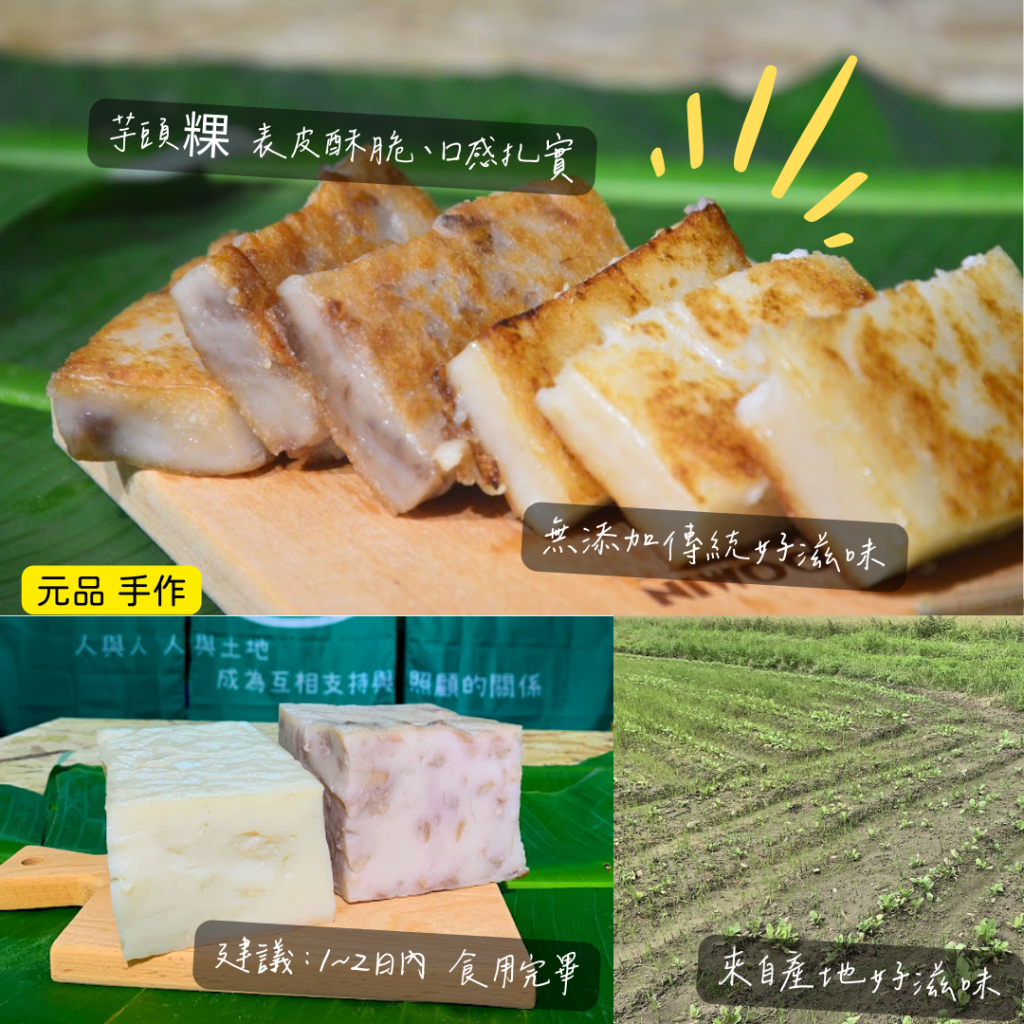 使用元品有機米手工製作,無化學添加,尤其芋頭粿,我很愛,可以吃到芋頭塊和芋頭香氣,喜歡清爽口味的,蘿蔔糕簡單又美味。