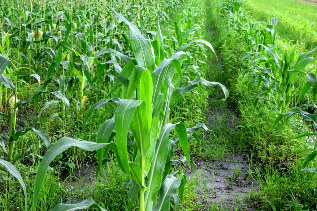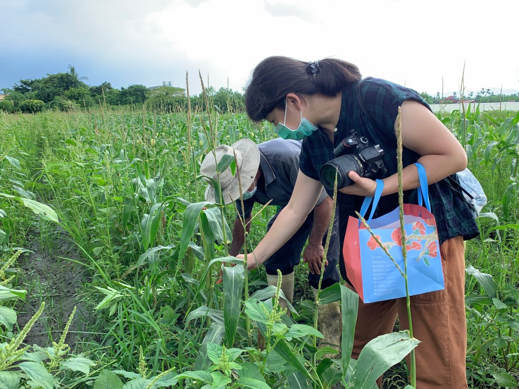 極鮮玉米有代價,一次大面積灑種就是同樣的工序一次跑完。啟尚哥隔周種植,除了播種、收成之外,同時要處理不同行的除草和留穗問題,一株玉米留一穗或是留兩穗品質就不一樣。我們拜訪大約是8月中,連日下午都有午後雷陣雨,踏進田區泥土是濕濘的,對玉米的生長條件相對嚴苛。