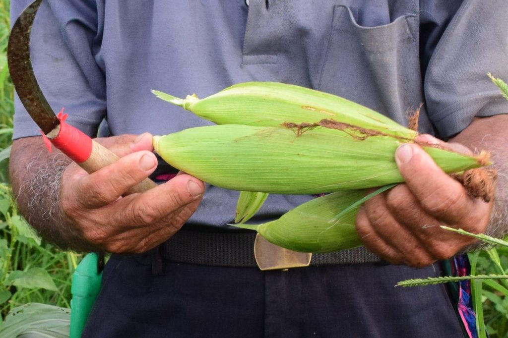 目前啟尚大哥的田區除了有稻米(高雄147),另外有毛豆、糯玉米、甜玉米(金珍珠、華珍),金針株顆粒較小,皮薄細緻。華珍甜玉米口感比較厚實,塊頭也比金針株粗獷,冬天有機會還會出現水果玉米,過去在美濃種植水果玉米經驗是不耐南部氣候,喜歡冬季氣溫的水果玉米生長狀況愈來越差,所幸回到適地適種,吃在地的好滋味。