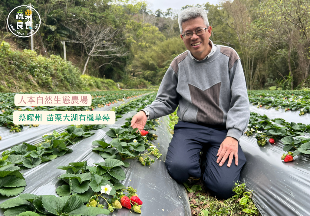 蔡大哥的人本自然生態農場,也有開放大家事先預約入園採果喔( 預約專線:0972-393327 ),帶著親友來感受大湖的有機草莓園。